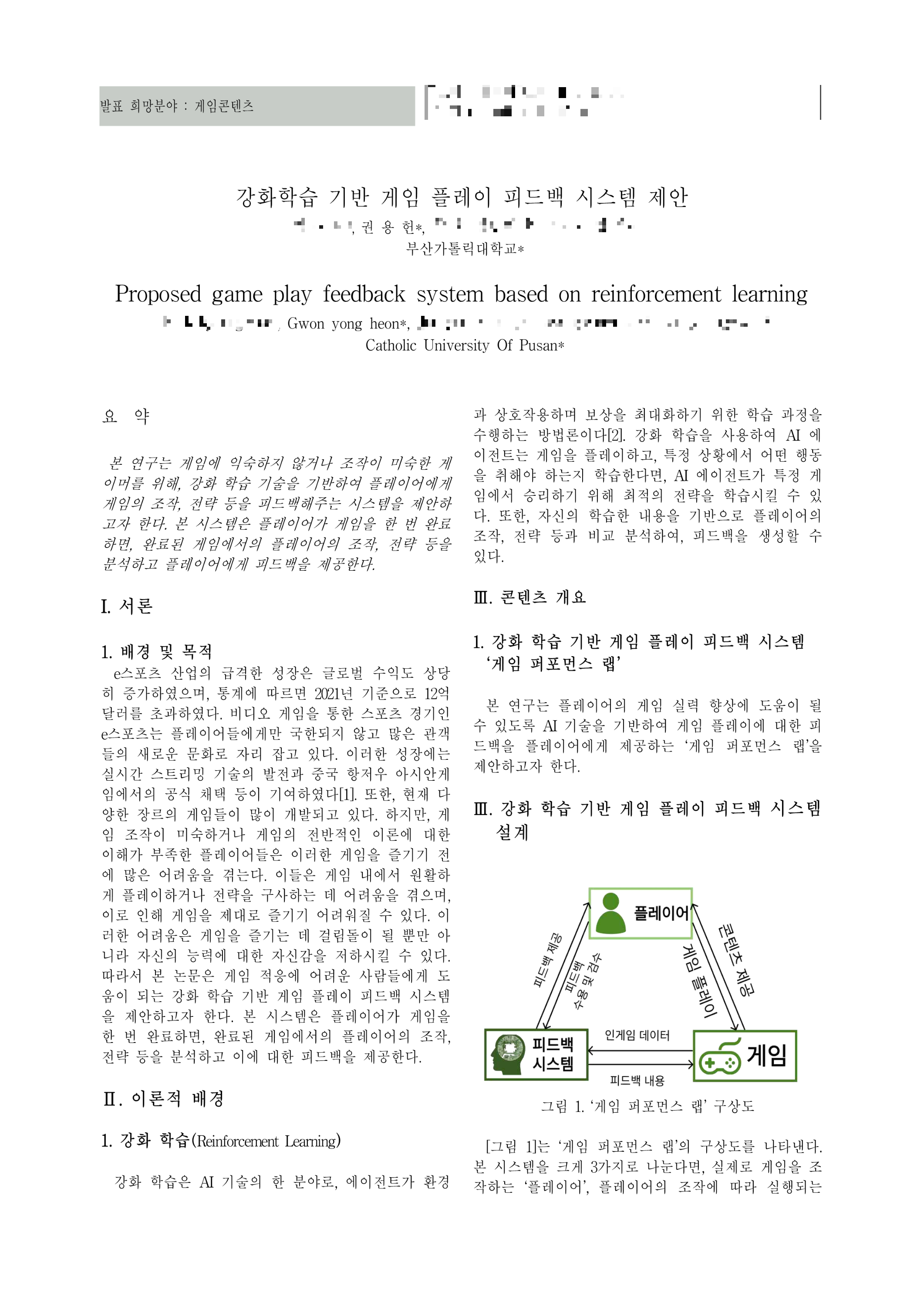 강화 학습 기반 게임 플레이 피드백 시스템 제안 논문 발표.